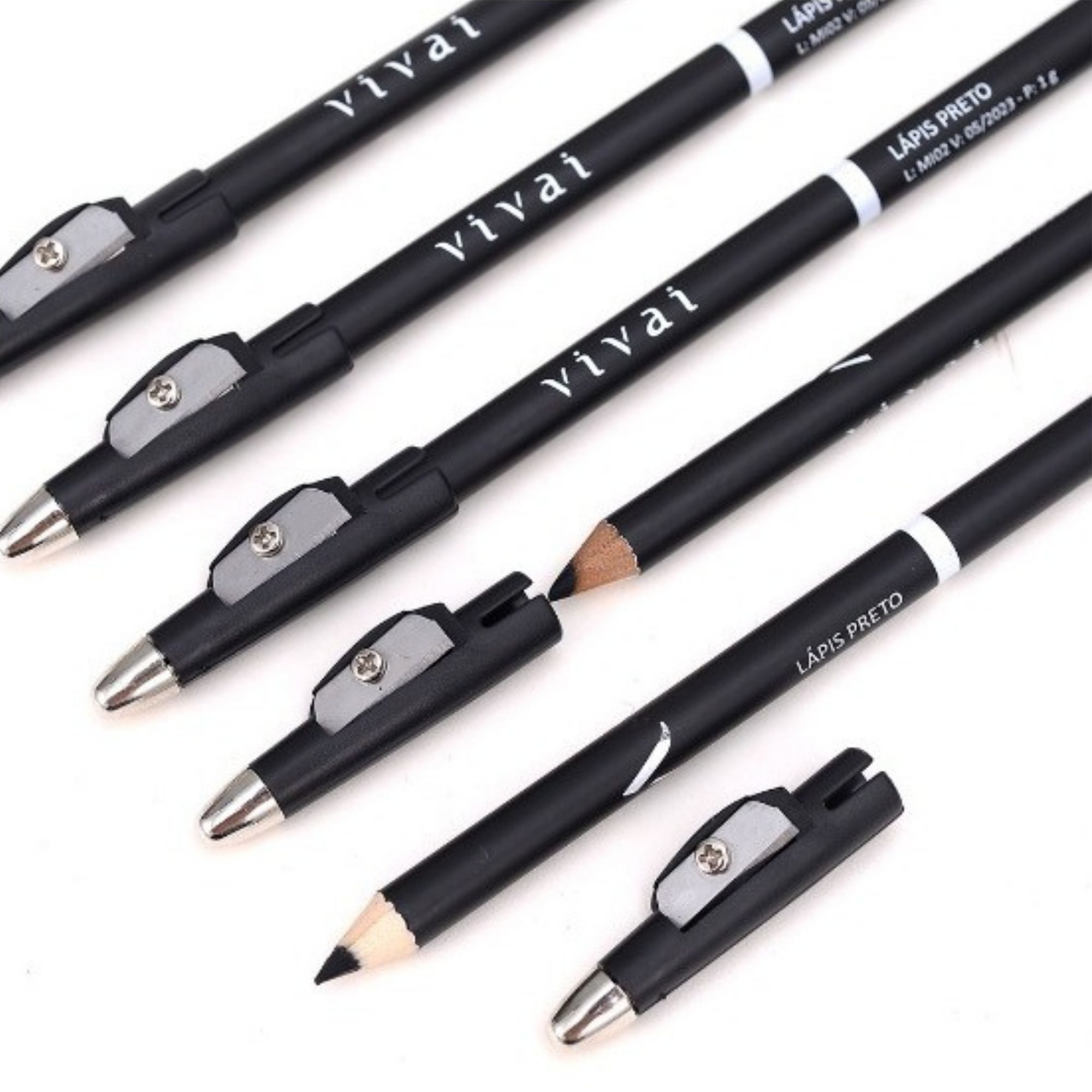 O Lápis de Olho Preto com Apontador Vivai possui tom preto intenso, textura macia e cremosa para uma aplicação fácil e uniforme, proporcionando um acabamento elegante e preciso.